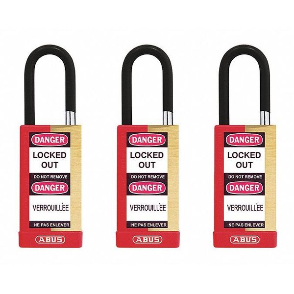 Keyed Padlock, Open, Rectangular Brass Body, Plastic Encased Hardened Steel Shackle, 3/4 in WSKU G4434162Categories Raw MaterialsDescription Keyed Padlock, Body Color Red, Body Height 3 in, Body Material Brass, Body Thickness 3/4 in, Body Width 2 in, Header None/No Header, Key Type Keyed Alike, Non-Removable Key No, Shackle Diameter 1/4 in, Shackle Height 1 1/2 in, Shackle Material Hardened Steel, Shackle Type Open, Width Across Shackle 3/4 in, Body Material Coating Powder Coated, Body Shape Rectangular, Control Key Registration Required Yes, Includes (2) Keys, Package Quantity 3graingerSKU: 459U24, mscSKU: , zoro_no: G4434162, mongo_id: 65bbe9bf22d7a989a9974aac