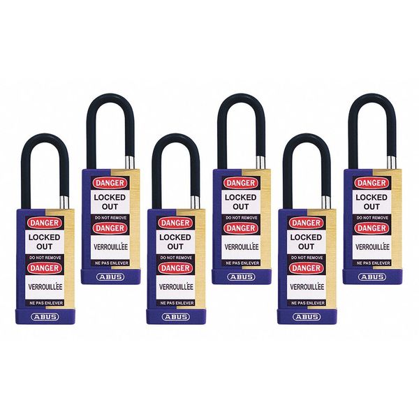 SKU G4434582Categories Raw MaterialsDescription Keyed Padlock, Body Color Purple, Body Height 1 3/4 in, Body Material Brass, Body Thickness 3/4 in, Body Width 2 in, Header None/No Header, Key Type Keyed Different, Non-Removable Key No, Shackle Diameter 1/4 in, Shackle Height 3 in, Shackle Material Hardened Steel, Shackle Type Open, Width Across Shackle 3/4 in, Body Material Coating Powder Coated, Body Shape Rectangular, Control Key Registration Required Yes, Includes (2) Keys, Package Quantity 3graingerSKU: 459U53, mscSKU: , zoro_no: G4434582, mongo_id: 65bbe9bf22d7a989a9974aaf