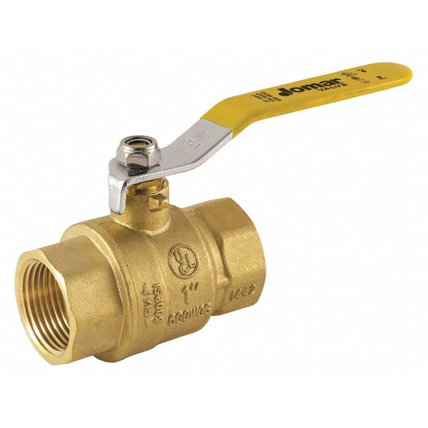 1" FNPT x MNPT Brass Ball Valve InlineSKU G4975625Categories Raw MaterialsDescription Ball Valve, Body Material Lead-Free Brass, Body Style Inline, 2-Piece, Pipe Size 1 in, Tube Size 1 in, Connection Type FNPT x MNPT, Full Port, Max. Pressure 600 psi CWP, Max. Steam Pressure 150 psi WSP, Temp. Range -20 Degrees to 300 Degrees F, Ball Material 304 Stainless Steel, Seat Material PTFE, Stem Type Blowout Proof, Handle Type Lever, Handle Material Steel with Vinyl Grip, Stem Material Lead Free Brass, Body Seal Material PTFE, Hose I.D. 1 in$32.80 / eachWeb price -