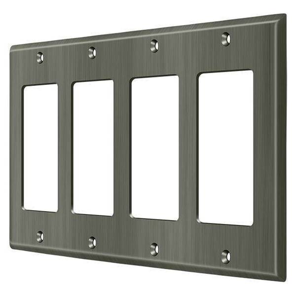 Quadruple Rocker Switch Plate, Number of Gangs: 4 Solid Brass, Antique Nickel Finish