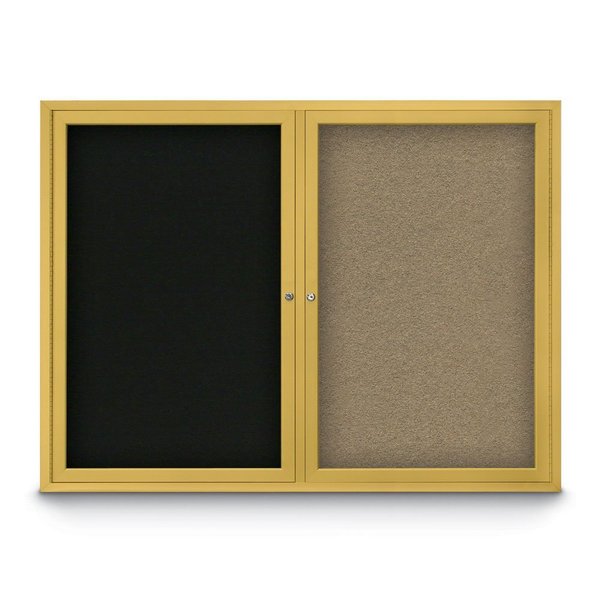 Corkboard, Double Door, Radius Frame, 48x36", Black/Pearl