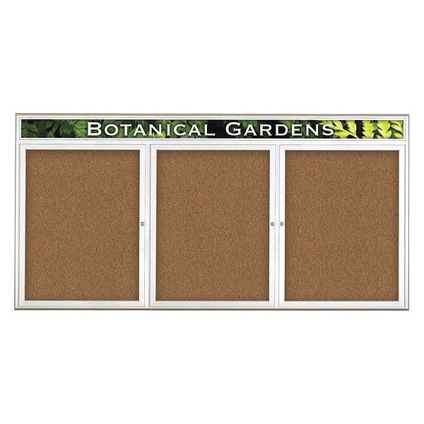 Corkboard, Triple Door, Radius Frame, Header, 96x48", Satin/Tan Forbo