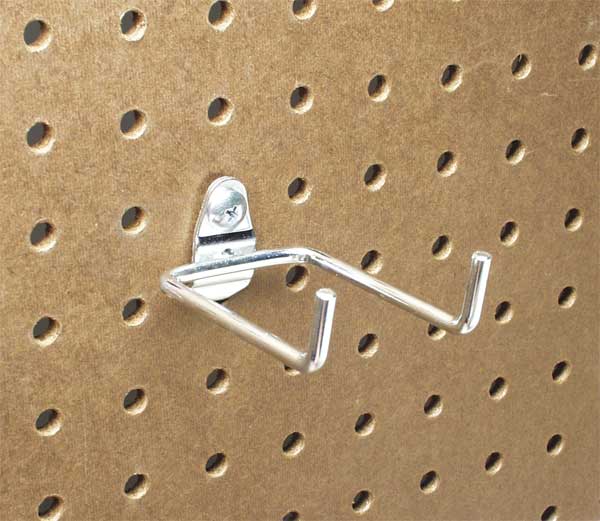$17.86 / eachWeb price2-3/4 In. Double Rod 80 Degree Bend Steel Pegboard Hook for 1/8 In. and 1/4 In. Pegboard 10 PackSKU G1979518Categories Raw MaterialsDescription Double Rod Pegboard Hook, Number of Hooks 10, Overall Height 2 3/4 in, Overall Length 2 3/4 in, Overall Width 1 5/8 in, 2 3/4 in Hook Depth, Surface, Screw-In Locking System, Circle For Pegboard Hole Shape, Steel, Silver, Zinc-Plated, Double Rod Hook Accessory Type, Screws, Package Quantity 10graingerSKU: 6YB52, mscSKU: 03096690, zoro_no: G1979518, mongo_id: 65bbe7863aaddbd5a909e208