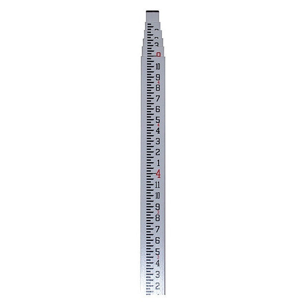SKU G5289724Categories Raw MaterialsDescription Leveling Rod, Adjustable Height Telescoping, Overall Height - Maximum 4 ft, Overall Height - Minimum 1 5/16 ft, Graduation Marks 1/100 in, 1 ft, Head Style Not Applicable, Material Fiberglass, Mounting Thread Size Not Applicable, Number of Segments 5, Color White, Compatible with Grainger Part Number 31NE35, 348GP3, 348GP4, 348GP5, 348GP6, 45JL22, 45JL23, 494R20, 61KL78, 61KL79, Compatible with Level Type Optical and Transit Levels, Rotary Laser LevelsgraingerSKU: 9T954, mscSKU: , zoro_no: G5289724, mongo_id: 65bbe7d23aaddbd5a90baa40