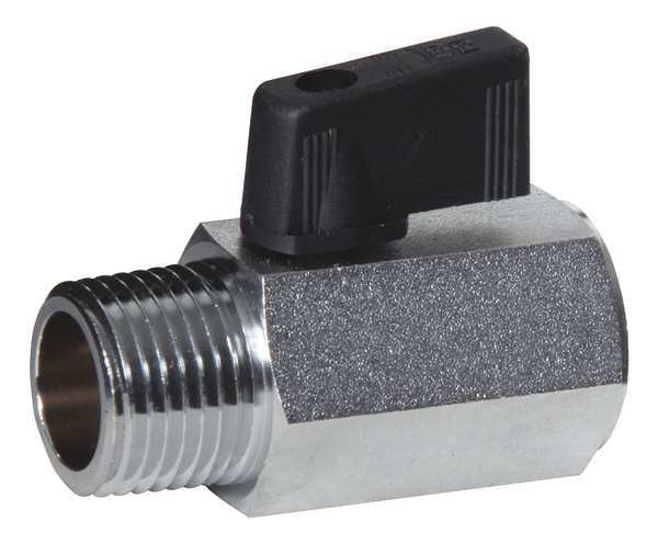 SKU G9752285Categories Raw MaterialsDescription Mini Ball Valve, Body Material Nickel-Plated Brass, Body Style Inline, 1-Piece, Pipe Size 1/8 in, Connection Type FNPT x MNPT, Full Port, Max. Pressure 450 psi CWP, Max. Steam Pressure 150 psi WSP, Temp. Range -20 Degrees to 370 Degrees F, Ball Material Chrome Plated Brass, Seat Material PTFE, Stem Type Blowout Proof, Handle Type Wedge, Handle Material Polycarbonate, Stem Material Brass$10.00 / eachWeb price1/8" FNPT x MNPT Nickel Brass Mini Ball Valve InlineSKU G9752285Categories Raw MaterialsDescription Mini Ball Valve, Body Material Nickel-Plated Brass, Body Style Inline, 1-Piece, Pipe Size 1/8 in, Connection Type FNPT x MNPT, Full Port, Max. Pressure 450 psi CWP, Max. Steam Pressure 150 psi WSP, Temp. Range -20 Degrees to 370 Degrees F, Ball Material Chrome Plated Brass, Seat Material PTFE, Stem Type Blowout Proof, Handle Type Wedge, Handle Material Polycarbonate, Stem Material Brass$10.00 / eachWeb price -