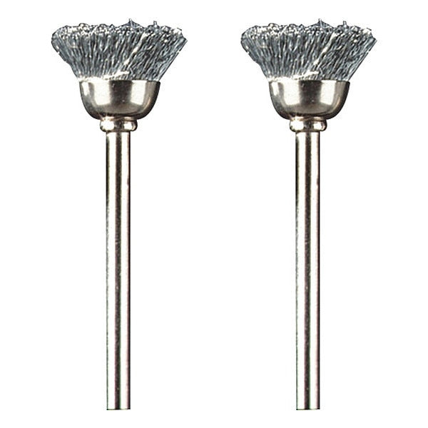 Carbon Steel Brush, 1/2in. dia., PK2SKU G0331381Categories Raw MaterialsDescription Rotary Tool Brush, Bristle Material Carbon Steel, Brush Diameter 1/2 in, Shank Diameter 1/8 in, Brush Type Cup, Bristle Type Straight, Material Application Brass, Copper, Gold, Soft Ferrous Metals, Wood, Max. Speed 15,000 RPM, Mount Type Mounted, Package Quantity 2graingerSKU: 45AF67, mscSKU: 92763283, zoro_no: G0331381, mongo_id: 65bbe7c49a749db8227566eb