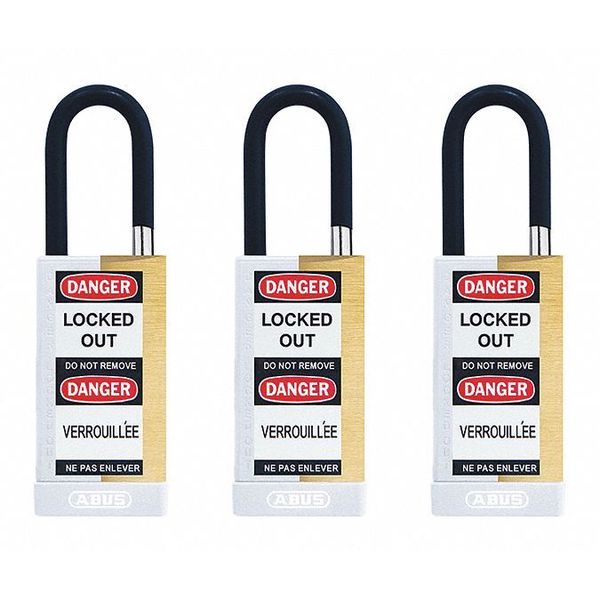 SKU G4436113Categories Raw MaterialsDescription Keyed Padlock, Body Color White, Body Height 3 in, Body Material Brass, Body Thickness 3/4 in, Body Width 2 in, Header None/No Header, Key Type Keyed Different, Non-Removable Key No, Shackle Diameter 1/4 in, Shackle Height 1 1/2 in, Shackle Material Hardened Steel, Shackle Type Open, Width Across Shackle 3/4 in, Body Material Coating Powder Coated, Body Shape Rectangular, Control Key Registration Required Yes, Includes (2) Keys, Package Quantity 3graingerSKU: 459U70, mscSKU: , zoro_no: G4436113, mongo_id: 65bbe79a9a749db822747cb6