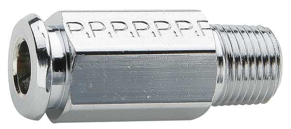 SKU G1790661Categories Raw MaterialsDescription Pipe Coupler, Application Dental Equipment, Pneumatic Systems, Water Lines, Fitting Side A Connection Type MNPT, Fitting Side B Connection Type Plug in Stem, Flow Control Type Flow-through, Fitting Side A Pipe Size 1/8 in, Fitting Material Brass, Overall Length 1 9/32 in, Specific Fitting Shape Straight Through Coupler, Finish/Coating Chrome Plated, Material Grade CA360, Fitting Side B Tube Outer Diameter 1/4 in, Compatible Tube Material Nylon, Polyethylene, Polypropylene, Vinyl, Hex Size 1/2 ingraingerSKU: 5UNL0, mscSKU: 63033807, zoro_no: G1790661, mongo_id: 65bbe7949a749db8227460da