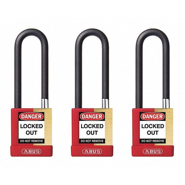 Keyed Padlock, Open, Rectangular Brass Body, Plastic Encased Hardened Steel Shackle, 3/4 in WSKU G4433867Categories Raw MaterialsDescription Keyed Padlock, Body Color Red, Body Height 1 3/4 in, Body Material Brass, Body Thickness 3/4 in, Body Width 2 in, Header None/No Header, Key Type Keyed Alike, Non-Removable Key No, Shackle Diameter 1/4 in, Shackle Height 3 in, Shackle Material Hardened Steel, Shackle Type Open, Width Across Shackle 3/4 in, Body Material Coating Powder Coated, Body Shape Rectangular, Control Key Registration Required Yes, Includes (2) Keys, Package Quantity 3graingerSKU: 459U06, mscSKU: , zoro_no: G4433867, mongo_id: 65bbe7793aaddbd5a9099163