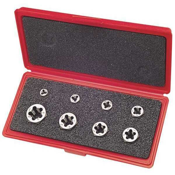 8pc Carbon Steel Hexagon Rethreading Die Set 377 Greenfield Threading, 1/4-28 to 3/4-16 UNF