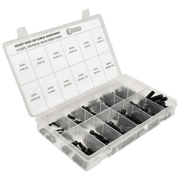SKU G4039734Categories Raw MaterialsDescription Cap Screw Assortment, Socket Head Cap Screw Head Type Standard, Number of Pieces 170, System of Measurement Inch, Thread Size #10-24, #6-32, 1/4 In.-20, 3/8 In.-16, 5/16 In.-18, #8-32, Screw Size #6 to 3/8 in, Overall Length 1/2 in, 1 in, Number of Sizes 12, Drive Type External Hex, Material Alloy Steel, Finish Black Oxide, Pack Size Small Pack, Special Features Not Applicable, Container Material Plastic, Includes Case, Manufacturer Location Made in US, Number of Different Sizes 12graingerSKU: 1.30E+71, mscSKU: , zoro_no: G4039734, mongo_id: 65bbe77c9a749db82273f3f4