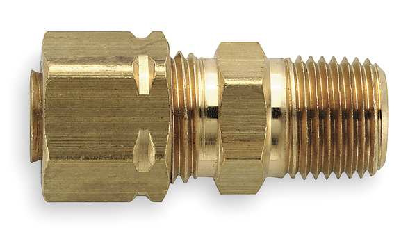 1/2" Compression x 1/4" MNPT Brass Connector 10PKSKU G3341283Categories Raw MaterialsDescription Male Connector, Application Air, Inert Gases, Non-Combustible Gases, Potable Water, Fitting Side A Connection Type Compression, Fitting Side B Connection Type MNPT, Fitting Material Brass, Fitting Side A Tube Outer Diameter 1/2 in, Maximum Operating Pressure 750 psi, Maximum Operating Temperature 200 Degrees F, Overall Length 1 7/16 in, Specific Fitting Shape Straight Adapter, Fitting Side B Pipe Size 1/4 in, Thread Size B 11/16-20, Series Compression, System of Measurement ImperialgraingerSKU: 6LJ14, mscSKU: 63034912, zoro_no: G3341283, mongo_id: 65bbe7763aaddbd5a9097515
