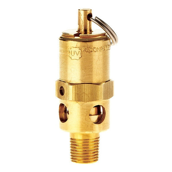 SKU G4633961Categories Raw MaterialsDescription Safety Valve, Hard Seat, (M)NPT Inlet (In.) 1/8 in, (F)NPT Outlet (In.) 1/4 in, Preset Setting (PSI) 125 psi, Max. Temp. (F) 400 Degrees F, Brass Body Material, Stainless Steel Ball, 302 SS Spring, Brass Seat, Standards ASME/CE/CRN Certified, Air$13.36 / eachWeb price