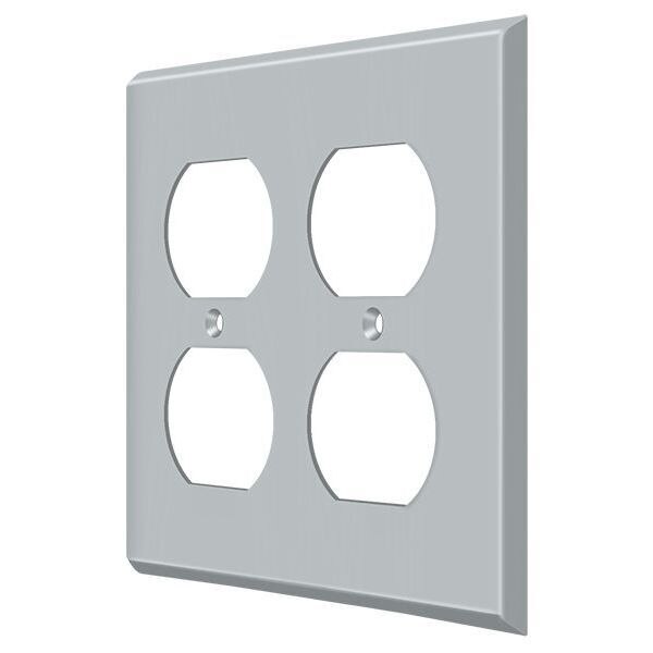Quadruple Outlet Switch Plate, Number of Gangs: 2 Solid Brass, Brushed Chrome Finish