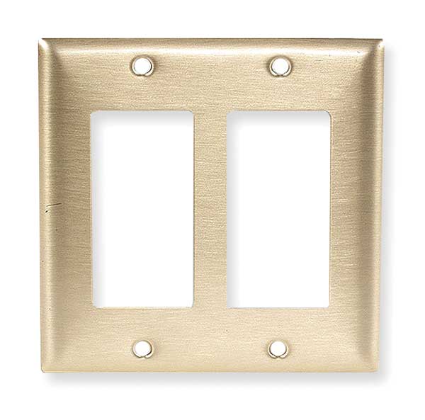 SKU G1445963Categories Raw MaterialsDescription Rocker Wall Plate, Color Brass, Material Brass, Number of Gangs 2, Plate Size Standard, Resistance Properties Impact Resistant, Finish Brushed, For Switch Type Rocker, Number of Outlet Openings 2, Number of Switch Openings 2, Outlet Orientation Vertical, Overall Height 0.1 in, Standards UL Listed, Wall Plate Type Decorator-Rocker, Features Protective Film Helps to Prevent Scratches and DamagegraingerSKU: 4D147, mscSKU: , zoro_no: G1445963, mongo_id: 65bbe77f3aaddbd5a909b621