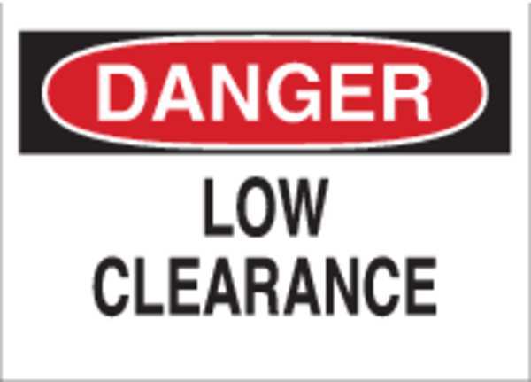 Danger Sign, 7X10", R and BK/WHT, ENG, Legend: Low Clearance, 42528