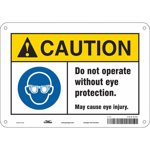 Safety Sign, 7 in Height, 10 in Width, Aluminum, Vertical Rectangle, English, 466V68SKU G5577770Categories SafetyDescription Safety Sign, Vertical Rectangle, Number of Printed Sides 1, English, Sign Format ANSI/OSHA Format, Sign Legend Do Not Operate Without Eye Protection. May Cause Eye Injury., Sign Legend Background Color White, Sign Legend Style Symbol and TextgraingerSKU: 466V68, mscSKU: , zoro_no: G5577770, mongo_id: 65bbe91d22d7a989a99358a9