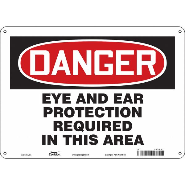 SKU G5570603Categories SafetyDescription Safety Sign, Horizontal Rectangle, Number of Printed Sides 1, English, Sign Format Traditional OSHA, Sign Legend Eye And Ear Protection Required In This Area, Sign Legend Background Color White, Sign Legend Style TextgraingerSKU: 468R01, mscSKU: , zoro_no: G5570603, mongo_id: 65bbe91d22d7a989a99358ae