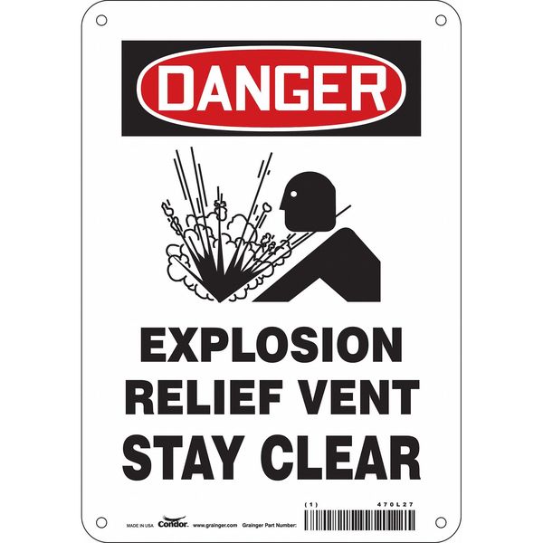 Safety Sign, 10 in Height, 7 in Width, Aluminum, Horizontal Rectangle, English, 470L27SKU G5884772Categories SafetyDescription Safety Sign, Horizontal Rectangle, Number of Printed Sides 1, English, Sign Legend Explosion Relief Vent Stay Clear, Sign Legend Background Color White, Sign Legend Style Symbol and TextgraingerSKU: 470L27, mscSKU: , zoro_no: G5884772, mongo_id: 65bbe91d22d7a989a9935927