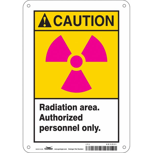 Radiation Safety Sign, 10 in H, 7 in W, Aluminum, Horizontal Rectangle, 451Z21