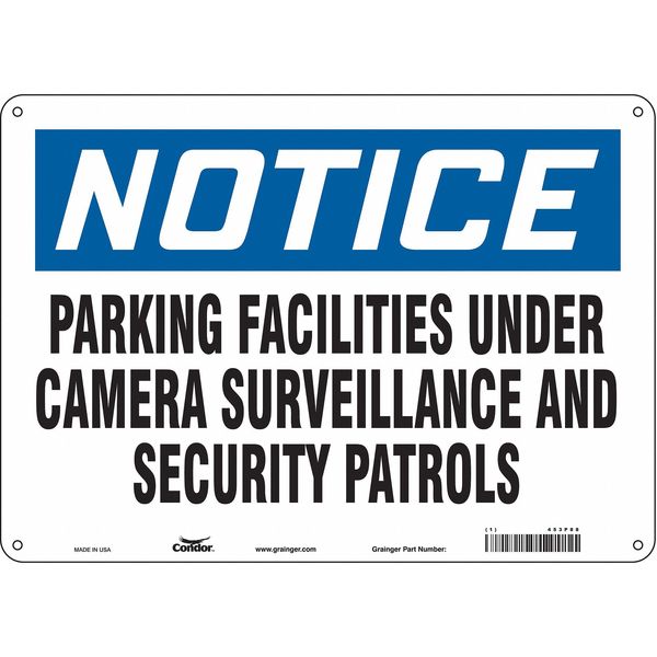 SKU G5101107Categories SafetyDescription Security Sign, Horizontal Rectangle, Number of Printed Sides 1, English, Sign Legend Parking Facilities Under Camera Surveillance And Security Patrols, Sign Legend Background Color White, Sign Legend Style TextgraingerSKU: 453P88, mscSKU: , zoro_no: G5101107, mongo_id: 65bbe91d22d7a989a99357f8