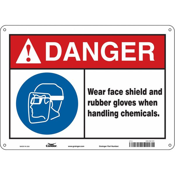 Safety Sign, 10 in Height, 14 in Width, Aluminum, Horizontal Rectangle, English, 464Z55SKU G5810091Categories SafetyDescription Safety Sign, Horizontal Rectangle, Number of Printed Sides 1, English, Sign Format ANSI/OSHA Format, Sign Legend Wear Face Shield And Rubber Gloves When Handling Chemicals., Sign Legend Background Color White, Sign Legend Style Symbol and TextgraingerSKU: 464Z55, mscSKU: , zoro_no: G5810091, mongo_id: 65bbe91d22d7a989a99358ba