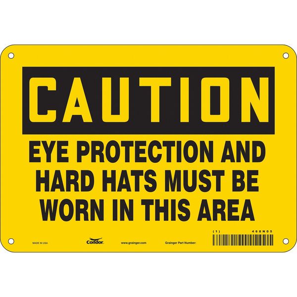 Safety Sign, 7 in Height, 10 in Width, Aluminum, Vertical Rectangle, English, 468N05SKU G5579931Categories SafetyDescription Safety Sign, Vertical Rectangle, Number of Printed Sides 1, English, Sign Format Traditional OSHA, Sign Legend Eye Protection And Hard Hats Must Be Worn In This Area, Sign Legend Background Color Yellow, Sign Legend Style TextgraingerSKU: 468N05, mscSKU: , zoro_no: G5579931, mongo_id: 65bbe91d22d7a989a99358d0