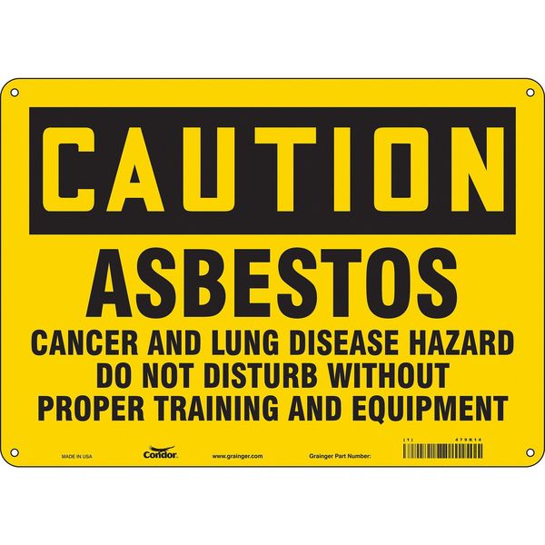 Safety Sign, 10 in Height, 14 in Width, Aluminum, Horizontal Rectangle, English, 479K14SKU G5813077Categories SafetyDescription Safety Sign, Horizontal Rectangle, Number of Printed Sides 1, English, Sign Format Traditional OSHA, Sign Legend Asbestos Cancer And Lung Disease Hazard Do Not Disturb Without Proper Training And Equipment, Sign Legend Background Color Yellow, Sign Legend Style TextgraingerSKU: 479K14, mscSKU: , zoro_no: G5813077, mongo_id: 65bbe91d22d7a989a993589a