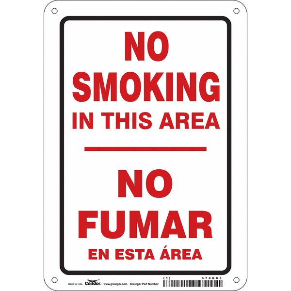 Safety Sign, 10" H, 7 in W, Horizontal Rectangle, English, Spanish, 474G63SKU G5822877Categories SafetyDescription Safety Sign, Horizontal Rectangle, Number of Printed Sides 1, English, Spanish, Sign Format Other Format, Sign Legend No Smoking This Area/No Fumar En Esta Area, Sign Legend Background Color White, Sign Legend Style TextgraingerSKU: 474G63, mscSKU: , zoro_no: G5822877, mongo_id: 65bbe91d22d7a989a9935948