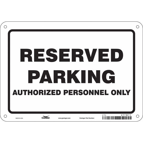 SKU G5829052Categories SafetyDescription Reserved Parking Sign, Height 7 in, Width 10 in, Sign Material Aluminum, Sign Mounting Style Mounting Holes, Printed Language English, Sign Shape Horizontal RectanglegraingerSKU: 477W71, mscSKU: , zoro_no: G5829052, mongo_id: 65bbe91d22d7a989a99358b2