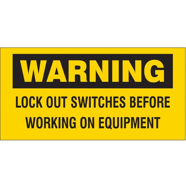 Safety Label, 4-1/2" W, 4-1/2" H, PK2, 487C95SKU G6540307Categories SafetyDescription Safety Sign, Square, Number of Printed Sides 1, English, Sign Format Other Format, Sign Legend Warning Lock Out Switches Before Working On Equipment, Sign Legend Background Color Black, Yellow, Sign Legend Style Text, Package Quantity 2graingerSKU: 487C95, mscSKU: , zoro_no: G6540307, mongo_id: 65bbe91d22d7a989a9935820