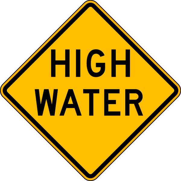 High Water Traffic Sign, 30 in Height, 30 in Width, Aluminum, Diamond, English