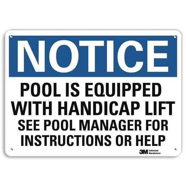 Notice Sign, RecycldReflecAlum, 10inWx7inH, U5-1460-RA_10X7SKU G2758500Categories SafetyDescription Notice Sign, Vertical Rectangle, Number of Printed Sides 1, English, Sign Format Traditional OSHA, Sign Legend Pool Is Equipped With Handicap Lift See Pool Manager For Instructions Or Help, Sign Legend Background Color White, Sign Legend Style TextgraingerSKU: , mscSKU: , zoro_no: G2758500, mongo_id: 65bbe91d22d7a989a9935448