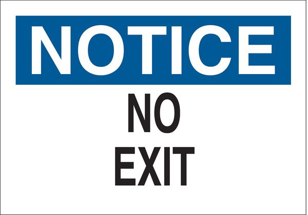 No Exit Sign, English, 14" W, 10" H, Fiberglass, White