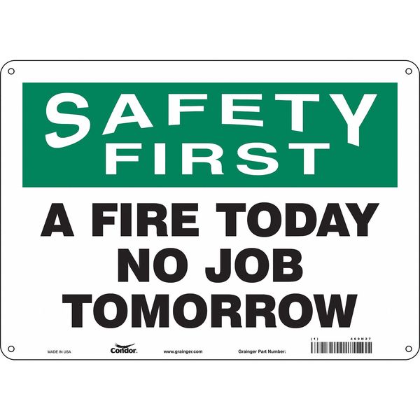 Safety Sign, 14" W, 10" H, 0.032" ThicknessSKU G5635450Categories SafetyDescription Safety Sign, Horizontal Rectangle, Number of Printed Sides 1, English, Sign Format Traditional OSHA, Sign Legend A Fire Today No Job Tomorrow, Sign Legend Background Color White, Sign Legend Style TextgraingerSKU: 469H27, mscSKU: , zoro_no: G5635450, mongo_id: 65bbe8f722d7a989a99275f0