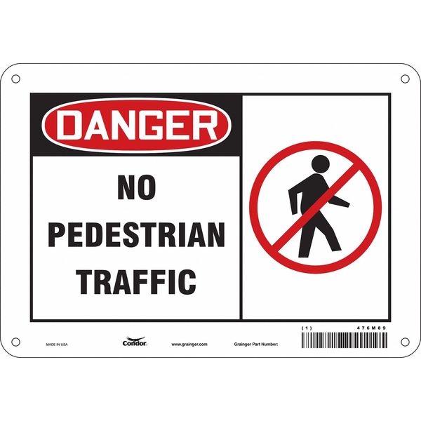 Safety Sign, 7 in Height, 10 in Width, Aluminum, Vertical Rectangle, English, 476M89SKU G5853500Categories SafetyDescription Safety Sign, Vertical Rectangle, Number of Printed Sides 1, English, Sign Format Traditional OSHA, Sign Legend No Pedestrian Traffic, Sign Legend Background Color White, Sign Legend Style Symbol and TextgraingerSKU: 476M89, mscSKU: , zoro_no: G5853500, mongo_id: 65bbe8f722d7a989a99275f6