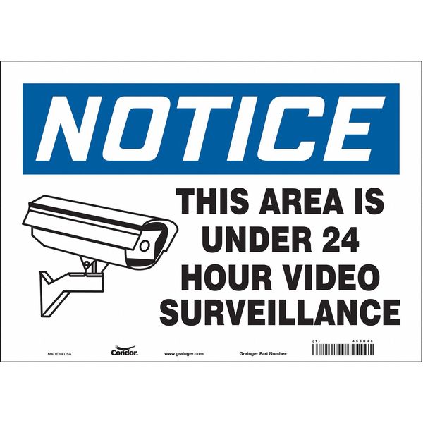 Security Sign, 10 in H, 14 in W, Vinyl, Horizontal Rectangle, English, 453R46SKU G5083071Categories SafetyDescription Security Sign, Horizontal Rectangle, Number of Printed Sides 1, English, Sign Legend This Area Is Under 24 Hour Video Surveillance, Sign Legend Background Color White, Sign Legend Style Symbol and TextgraingerSKU: 453R46, mscSKU: , zoro_no: G5083071, mongo_id: 65bbe8f722d7a989a99273d1