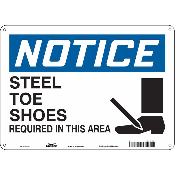 Safety Sign, 10 in Height, 14 in Width, Aluminum, Horizontal Rectangle, English, 465W68SKU G5078847Categories SafetyDescription Safety Sign, Horizontal Rectangle, Number of Printed Sides 1, English, Sign Format Traditional OSHA, Sign Legend Steel Toe Shoes Required In This Area, Sign Legend Background Color White, Sign Legend Style Symbol and TextgraingerSKU: 465W68, mscSKU: , zoro_no: G5078847, mongo_id: 65bbe8f722d7a989a9927394