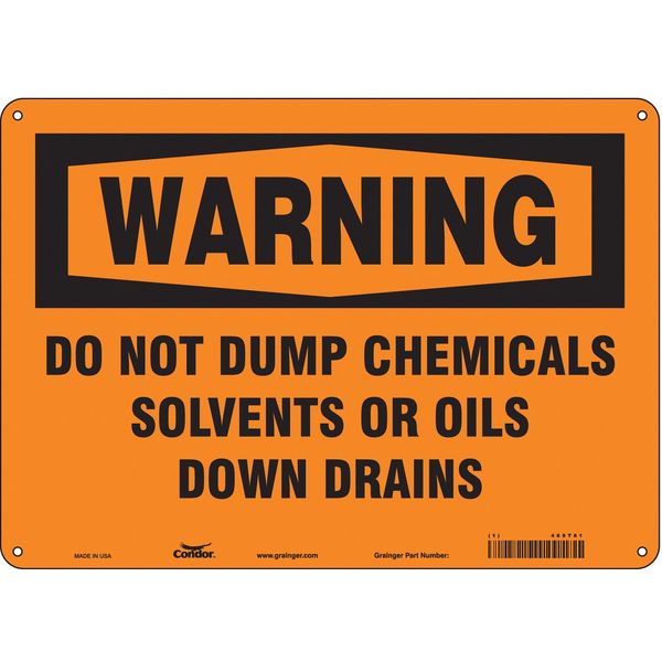 Safety Sign, 10 in Height, 14 in Width, Aluminum, Horizontal Rectangle, English, 468T81SKU G5566281Categories SafetyDescription Safety Sign, Horizontal Rectangle, Number of Printed Sides 1, English, Sign Format Traditional OSHA, Sign Legend Do Not Dump Chemicals Solvents Or Oils Down Drains, Sign Legend Background Color Orange, Sign Legend Style TextgraingerSKU: 468T81, mscSKU: , zoro_no: G5566281, mongo_id: 65bbe8f722d7a989a99275e9