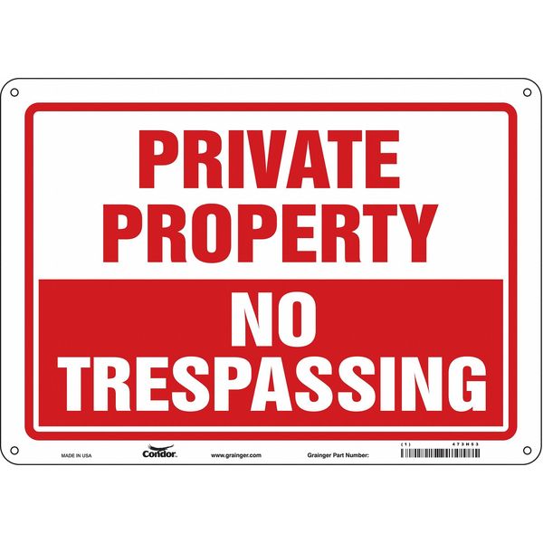 Safety Sign, 10 in Height, 14 in Width, Aluminum, Horizontal Rectangle, English, 473H53SKU G5552537Categories SafetyDescription Safety Sign, Horizontal Rectangle, Number of Printed Sides 1, English, Sign Format Other Format, Sign Legend No Trespassing, Sign Legend Background Color Red, White, Sign Legend Style TextgraingerSKU: 473H53, mscSKU: , zoro_no: G5552537, mongo_id: 65bbe8f722d7a989a99275ef
