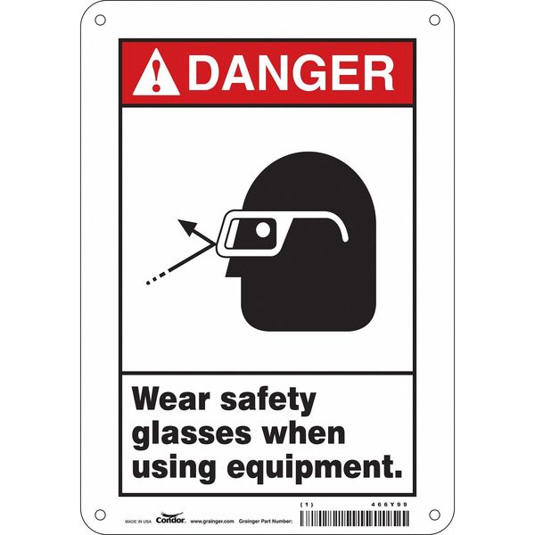 Safety Sign, 10 in Height, 7 in Width, Aluminum, Horizontal Rectangle, English, 466Y99SKU G5890488Categories SafetyDescription Safety Sign, Horizontal Rectangle, Number of Printed Sides 1, English, Sign Format ANSI/OSHA Format, Sign Legend Wear Safety Glasses When Using Equipment., Sign Legend Background Color White, Sign Legend Style Symbol and TextgraingerSKU: 466Y99, mscSKU: , zoro_no: G5890488, mongo_id: 65bbe8f722d7a989a99275c7