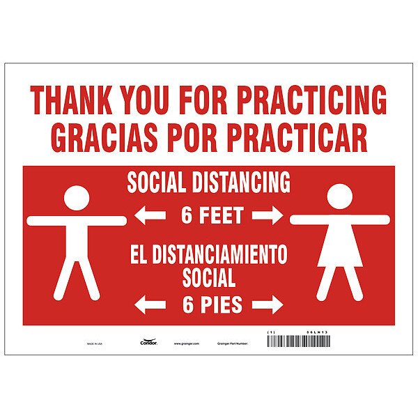 SKU G7660948Categories SafetyDescription Covid 19 Sign 10X14, Eng/Span Practice S, Sign Subject Matter Coronavirus Prevention, Height 10 in, Width 14 in, Sign Material Polyester, Sign Mounting Style Adhesive Surface, Header Thank You For Practicing/Gracias Por Practicar, Legend Social Distancing 6 Feet/El Distanciamiento Social 6 Pies, Printed Language English, SpanishgraingerSKU: 56LN13, mscSKU: , zoro_no: G7660948, mongo_id: 65bbe8f722d7a989a9927587
