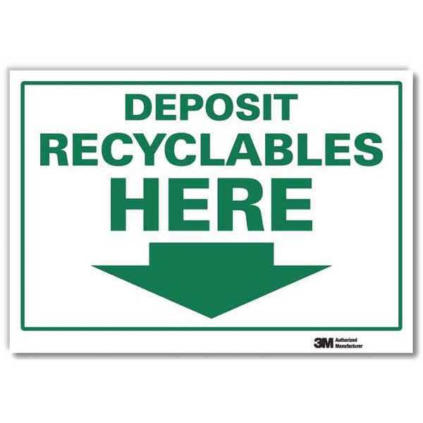 SKU G2282948Categories SafetyDescription Recycling Sign, Horizontal Rectangle, Number of Printed Sides 1, English, Sign Legend Deposit Recyclables Here, Sign Legend Background Color White, Sign Legend Style Symbol and Text Recycling Sign, 14x10 In., English, U1-1066-RD_14X10