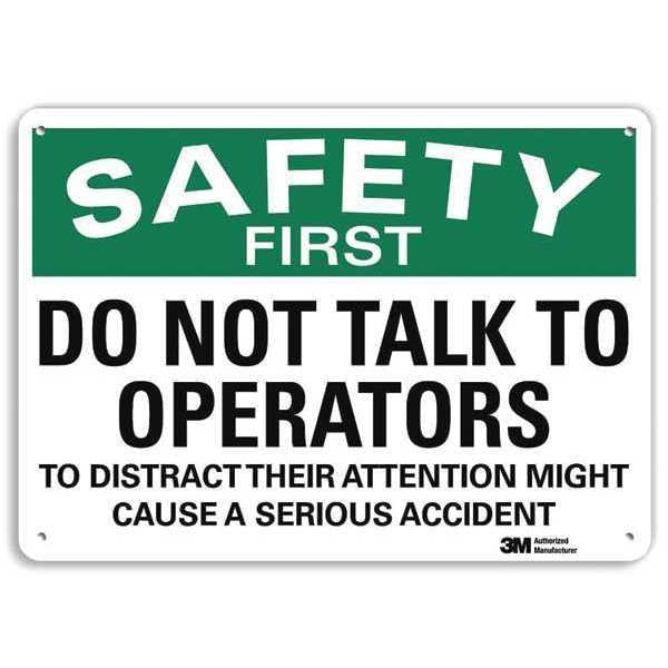 SKU G2735997Categories SafetyDescription Safety Sign, Vertical Rectangle, Number of Printed Sides 1, English, Sign Format Traditional OSHA, Sign Legend Do Not Talk To Operators To Distract Their Attention Might Cause A Serious Accident, Sign Legend Background Color White, Sign Legend Style Text Safety Sign, 7 in Height, 10 in Width, Aluminum, Vertical Rectangle, English, U7-1178-RA_10X7