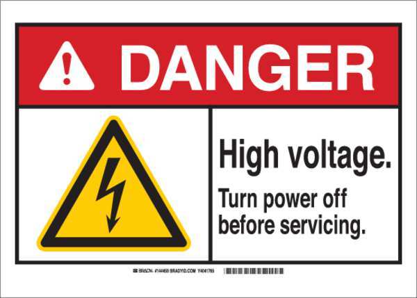 SKU G8486331Categories SafetyDescription Danger Sign, Rectangle, English, Sign Legend High Voltage Turn Power Off Before Servicing Danger Sign, Power Off, B-302, 3-1/2"H