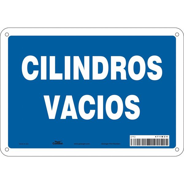 SKU G5254249Categories SafetyDescription Safety Sign, Vertical Rectangle, Number of Printed Sides 1, Spanish, Sign Format Other Format, Sign Legend Cilindros Vacios, Sign Legend Background Color Blue, Sign Legend Style Text Safety Sign, 10" W, 7" H, 0.032" Thickness