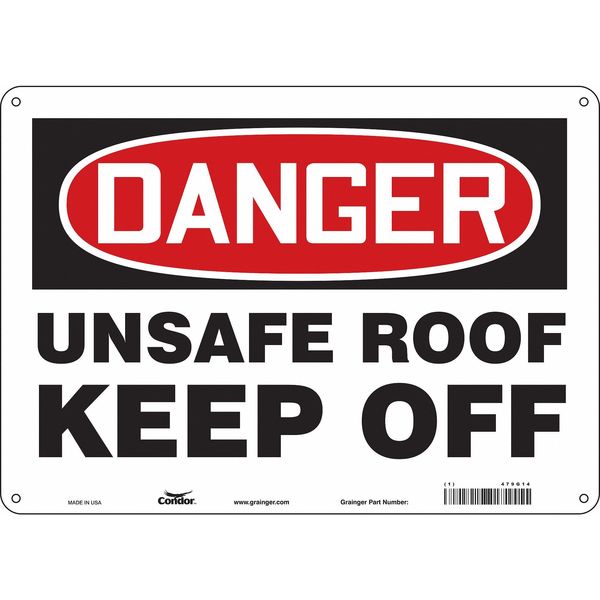 Safety Sign, 10 in Height, 14 in Width, Aluminum, Horizontal Rectangle, English, 479G14SKU G5886111Categories SafetyDescription Safety Sign, Horizontal Rectangle, Number of Printed Sides 1, English, Sign Format Traditional OSHA, Sign Legend Unsafe Roof Keep Off, Sign Legend Background Color White, Sign Legend Style TextgraingerSKU: 479G14, mscSKU: , zoro_no: G5886111, mongo_id: 65bbe8d122d7a989a9918e1e