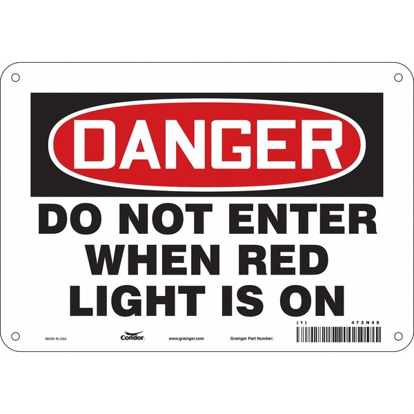 SKU G5207918Categories SafetyDescription Safety Sign, Vertical Rectangle, Number of Printed Sides 1, English, Sign Format Traditional OSHA, Sign Legend Do Not Enter When Red Light Is On, Sign Legend Background Color White, Sign Legend Style TextgraingerSKU: 472N48, mscSKU: , zoro_no: G5207918, mongo_id: 65bbe8d122d7a989a9918f24