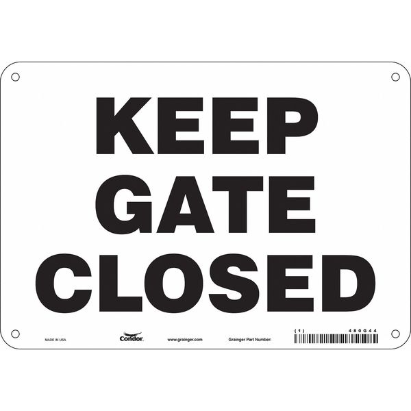 Safety Sign, 7 in Height, 10 in Width, Aluminum, Vertical Rectangle, English, 480G44SKU G5897512Categories SafetyDescription Safety Sign, Vertical Rectangle, Number of Printed Sides 1, English, Sign Legend Keep Gate Closed, Sign Legend Background Color White, Sign Legend Style TextgraingerSKU: 480G44, mscSKU: , zoro_no: G5897512, mongo_id: 65bbe8d122d7a989a9918e52