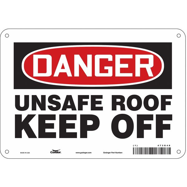 SKU G5567602Categories SafetyDescription Safety Sign, Vertical Rectangle, Number of Printed Sides 1, English, Sign Format Traditional OSHA, Sign Legend Unsafe Roof Keep Off, Sign Legend Background Color White, Sign Legend Style TextgraingerSKU: 473G48, mscSKU: , zoro_no: G5567602, mongo_id: 65bbe8d122d7a989a9918d7f